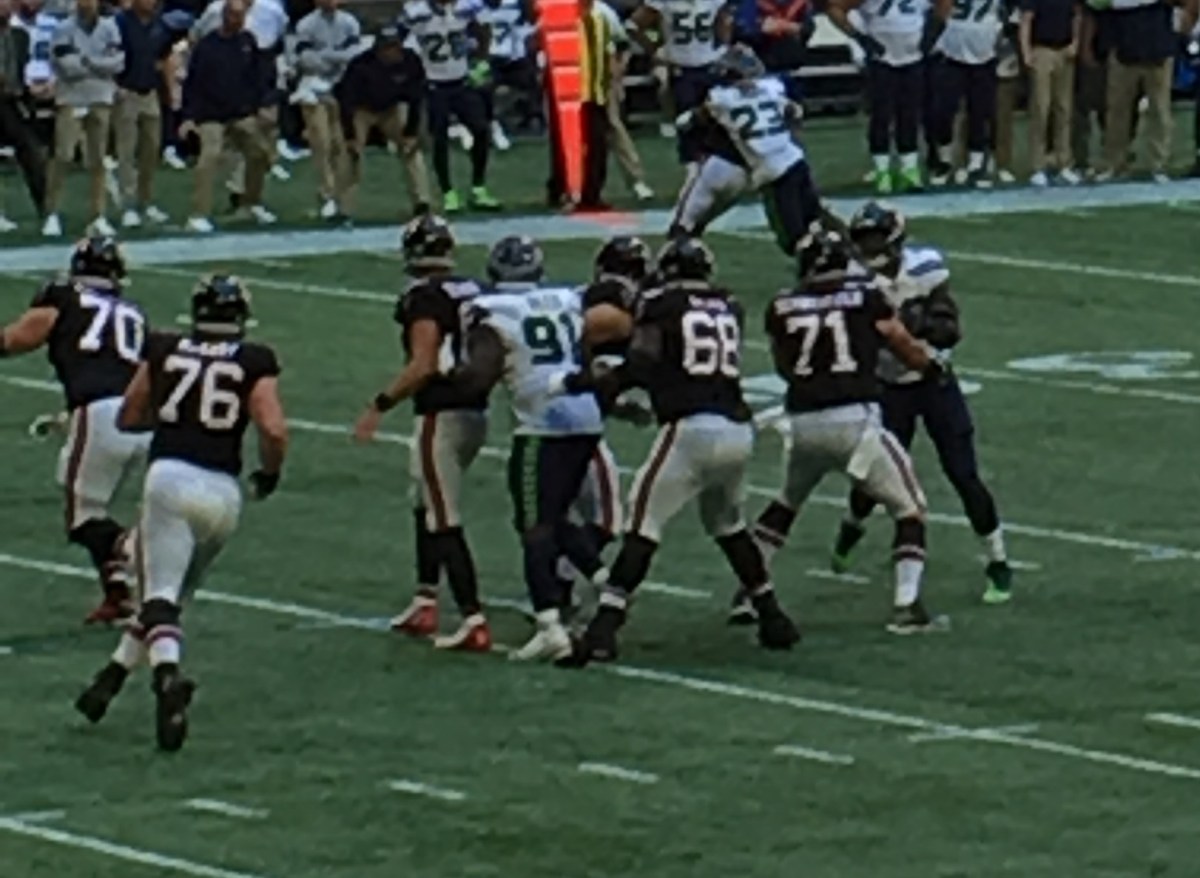 Russell Wilson is no Deshaun Watson, but he can escape and make some crazy things happen, which he did on Sunday.  Near escapes for successful passes or massive runs on his own.  The Seattle defense may no longer be the Legion of Boom, but they did manage to hold the Falcons to 20 points, had an interception, near interception (that would have been a pick six) 2 sacks, 7 quarterback hits, and forced and recovered 2 fumbles.  The Falcons, well, they finally managed 2 sacks.  Which was a major feat as they have not had a sack since the 3rd week of the season.  As a total team, they have 7 sacks, 3 by Grady Jarrett who added to his total on Sunday.