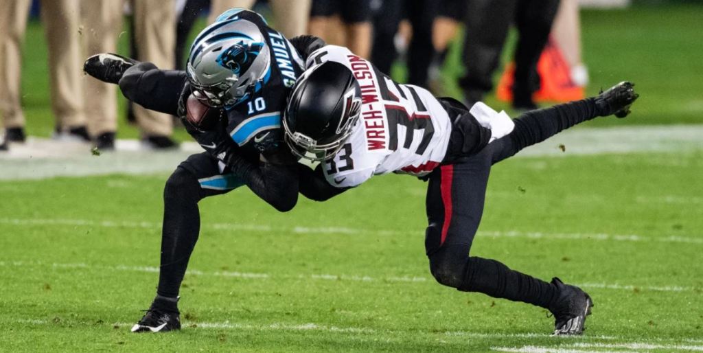 Blidi Wreh-Wilson Making a Big Stop on Curtis Samuel Photo Courtesy of Kyle Hess/Atlanta Falcons