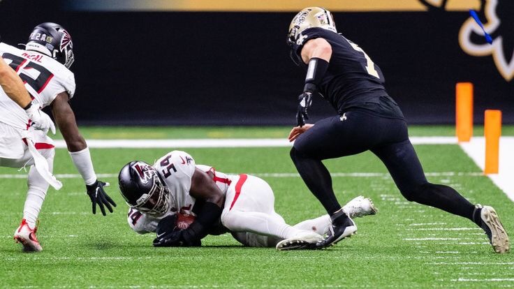 First and 10 from the 21, Taysom Hill passes to Michael Thomas for an 8-yard gain, stopped by Deion Jones. Latavius Murray goes for a yard forcing a 3rd and 1. Grady Jarrett and Allen Bailey combine for a sack of Hill. The Saints punt to Brandon Powell at the 32.