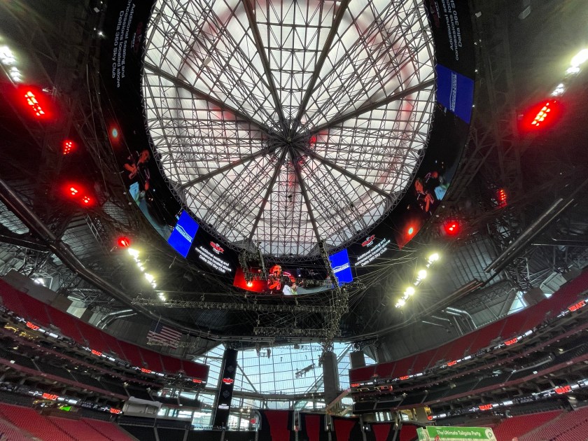 There was music and draft coverage on the halo board, couldn’t hear well, but could see as each team as they made their picks. Music was cut for the Falcons’ pic, maybe should have kept that going to muffle the reaction and language from much of the attendees with a quarterback was taken at 8. Only Ovie Mughelli thought the Falcons were going with Michael Penix, Jr with their first pick of this 2024 draft. Ovie and John Abraham were in attendance and helped kick off the event from the stage.