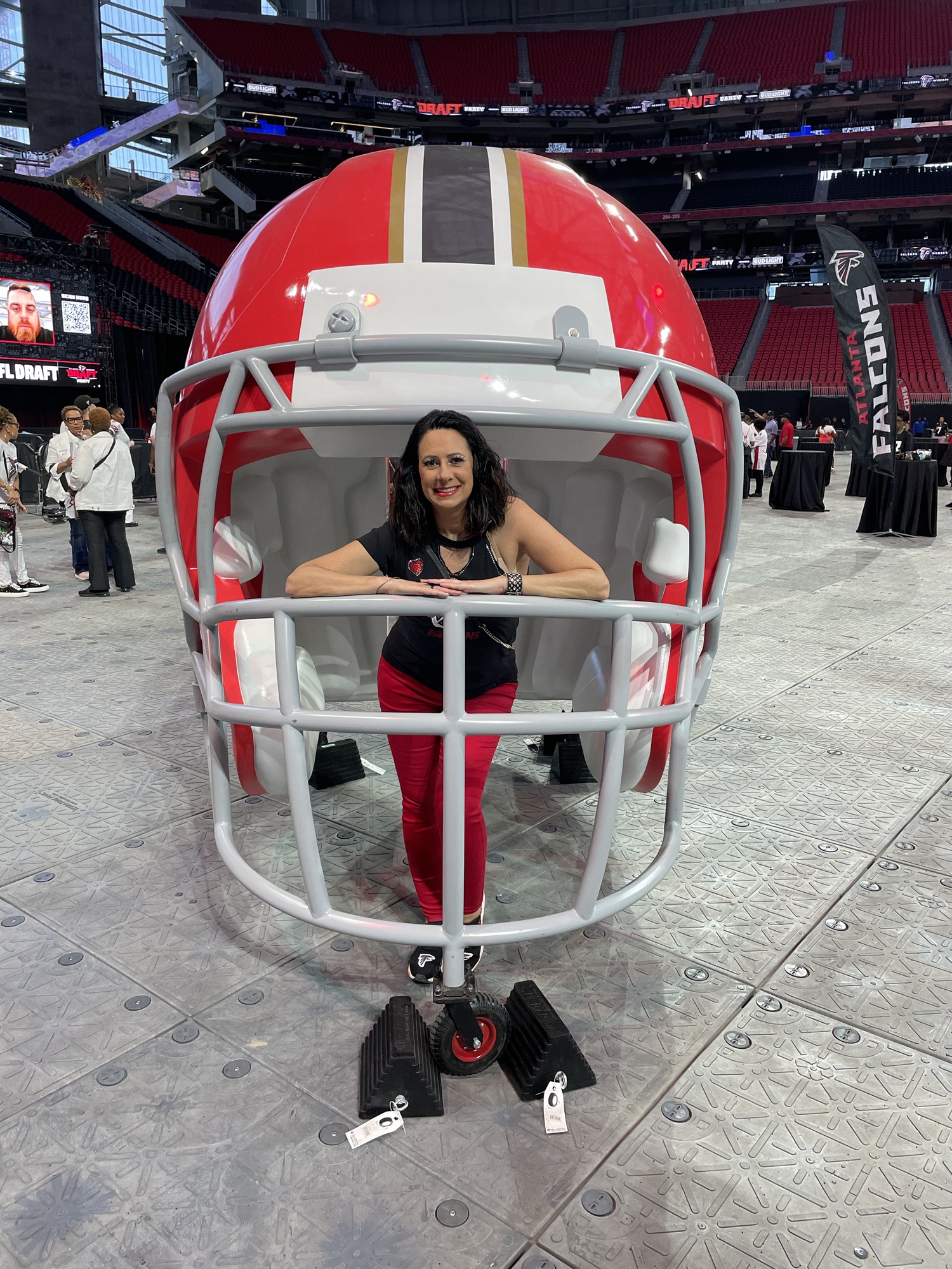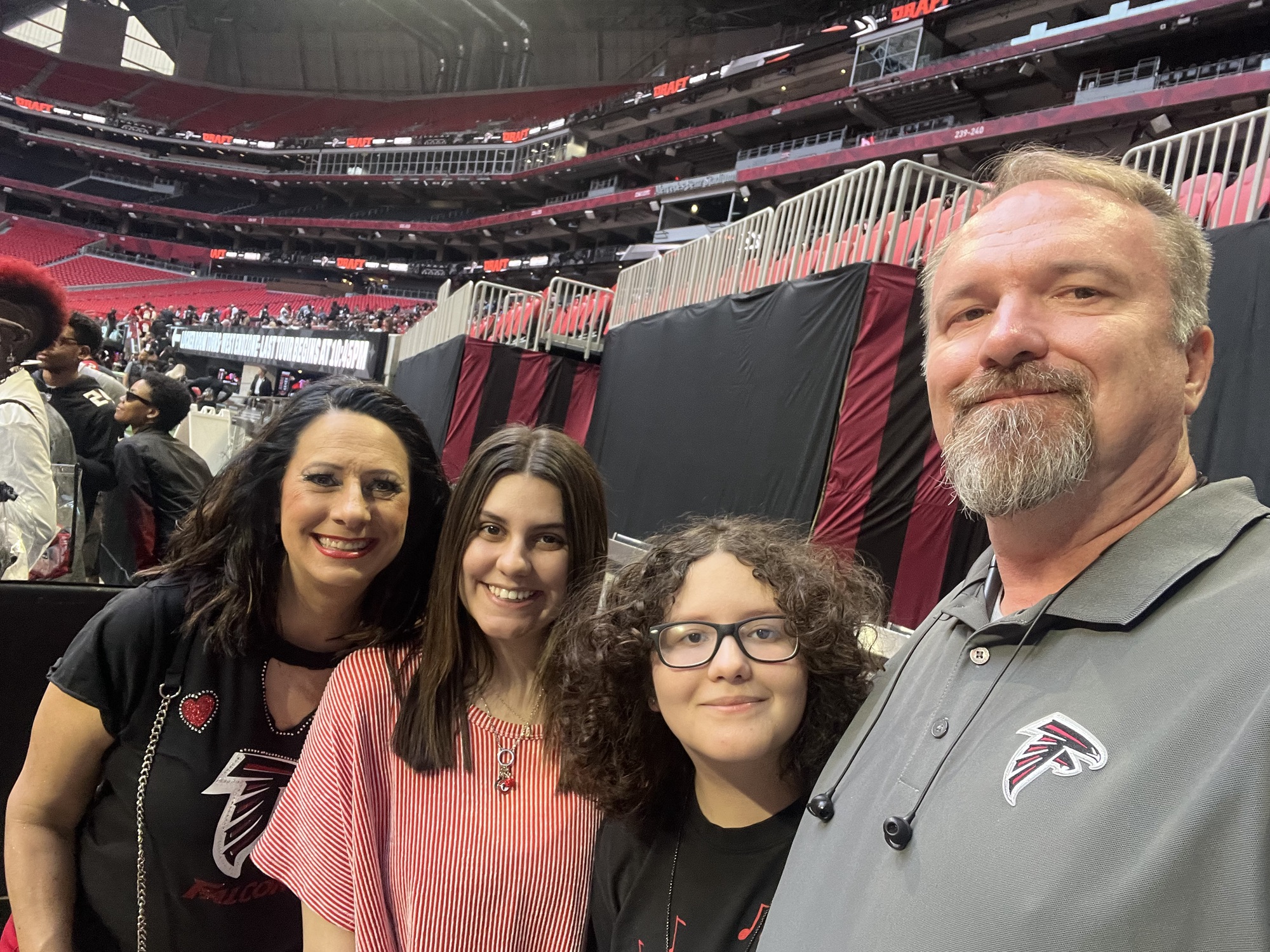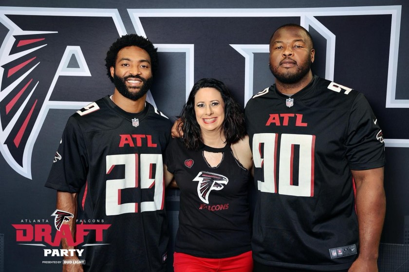 As a season ticket owner, we get a free party at the Mercedez Benz Stadium for opening night of the NFL draft nearly every year. This year was a disappointment on several levels. In years past, 4 to 5 photo stations were set up with 3 to 4 legends, 3 to 5 current players and a set of cheerleaders at each station. After an hour or so, another set moved in, so if you timed lines correctly, you could get a ton of pix and have good chats with players. Fans are scattered between all these groups and other photo opportunities, food, bars, games.