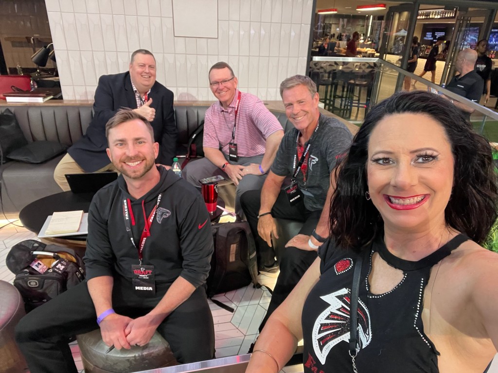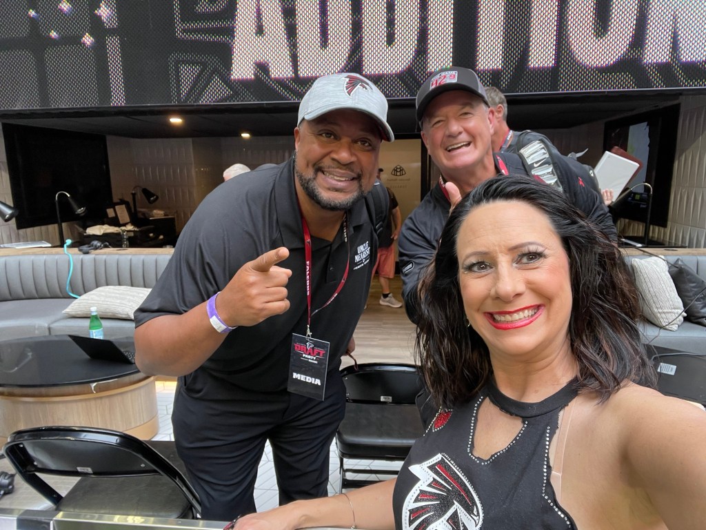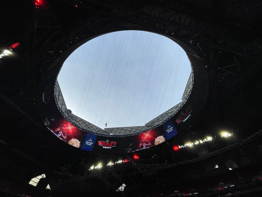 Carl Dukes and Mike Bell were wrapping up their pre-draft coverage and regular programming as the night kicked off. Then Dave Archer, Wes Durham, Beau Morgan, and Mike Conti provided draft coverage from one of the field suites for 92.9 The Game. Got to chat with all of them for a short time, so that was a definite plus to the evening. Not living in Georgia, I don’t have access to all these guys regularly or at local remotes, so excited when I do get a few minutes to chat and not just tweet them during the day.