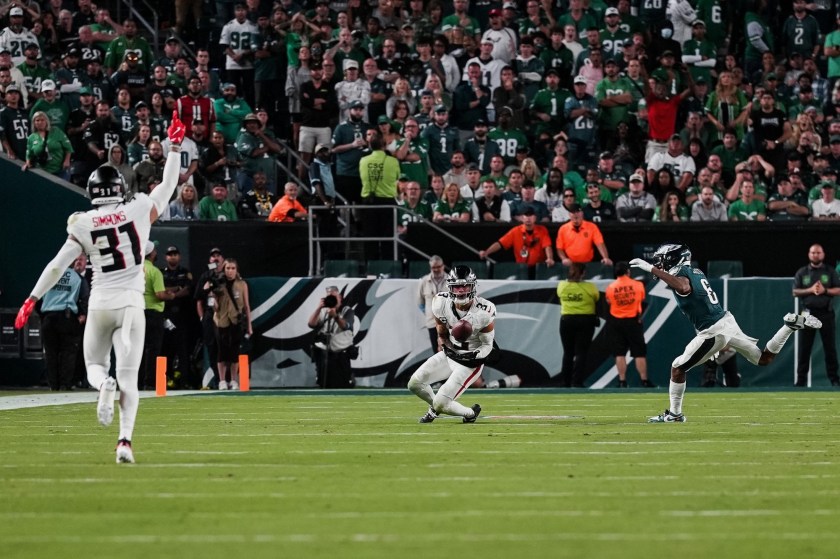 Williams takes the ball from the 1 up to the 23, with a flag for a block in the back, the Falcons begin this drive on the 14. Cousins is under center, with a sweep to McCloud to the right for 2 yards. On 2nd down, play fake to Kyle Pitts for 2 yards. On 3rd and 6, lots of crowd noise, Cousins finds McCloud in the middle for a big first down at the 35. Robinson gets 9 yards along the left side. After a big first down run for 15 yards by Robinson, the Falcons are at midfield. On 1st down, Cousins play fakes, double pumps, then is sacked. A flag on Philadelphia for pass interference tackling London while Cousins is still pumping and looking. Flag moves the ball to the 41, Cousins misses Mooney on the out route. On 2nd and 10, Cousins shoots it to an open McCloud for another first down with 3 defenders swarming. McCloud gets a 15 yard penalty for unnecessary roughness as the two-minute warning arrives. Clearly, many of us do not know the rules of football. He’s a receiver.