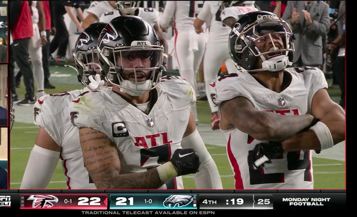 The Falcons take the knee to win the game. The Falcons are now 1-1.