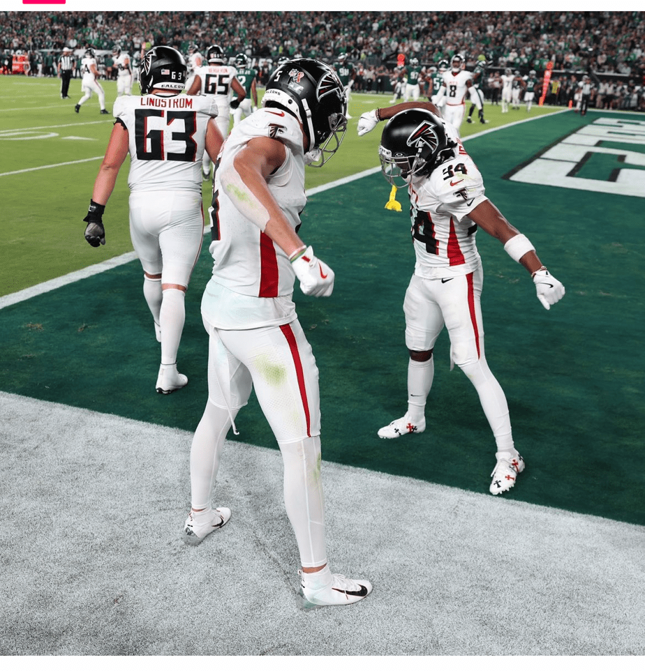 We are starting to see some new, good things from the O. Still think we need to use Drake London and Kyle Pitts more, but definitely see the impact of adding Darnell Mooney and Clemson boy Ray Ray McCloud. Kudos to the Falcons for actually using him as a receiver instead of just a returner. Everyone slept on Ray Ray, except for Rah and Terry Fontenot (and me). Similarly, Mooney never was appreciated or used enough in Chicago, but getting him more active in this offense is going to spread it out and allow everyone to get in on the action. Mooney had a touchdown, a 41-yard reception, and lots of motion in the backfield. Seeing Drake fake the post and catch that touchdown shows why he is so special and drafted so high, now that we are using him correctly. Drake’s first visit back in end zone since the London, England game October of 2023.