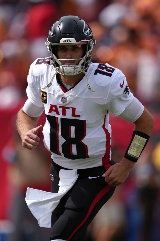 Asked about a near sack or possible scramble that turned into a pass to Bijan, Kirk commented that you “just have to be patient and drop the ball off sometimes.” Kirk was “really trying to not take the sack, so just give it to Bijan and most often, he will make something happen.”