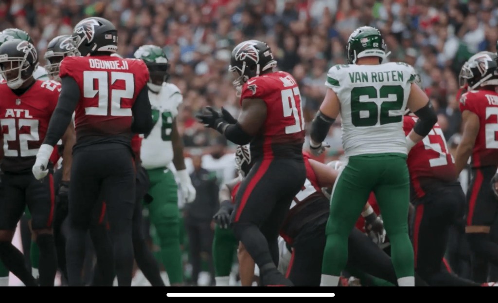 Jets take over at the 13 and run up the middle for 2 yards, big stop by Steven Means, Dante Fowler shaken up on the play. Wilson looks left and finds the receiver for the first down at the 28. Michael Carter gets 7 yards until Foye Oluokun makes the stop. Duron Harmon gets a PI away from the play and moves the ball to the 45. Coleman runs 3 yards to the right. On 2nd and 7, Wilson hands off to Coleman who goes 4 yards and across midfield, Richie Grant makes the hard and fast stop. From the shotgun, Wilson hands off to Todd Johnson who zooms through the right side for a first down. From the Falcons’ 42, Wilson fakes the handoff and finds the receiver at the line of scrimmage who is immediately met with Adetokunbo Ogundeji for a big open field tackle. Coverage downfield was perfect and Wilson’s only option. On 2nd and 9, Wilson is chased back to the Jets 41 and has to throw out of bounds. Third down, Wilson finds an open receiver at the 30, stopped by Darren Hall – need tighter coverage to stop that quicker. From the 28, Michael Carter gets the ball and nearly a first down, stopped by Fowler slowing him down and Davison wrapping arms around both players and taking them both down. On 2nd and 1, Coleman goes up the middle for the first down. Wilson underthrows the next pass and it falls incomplete.